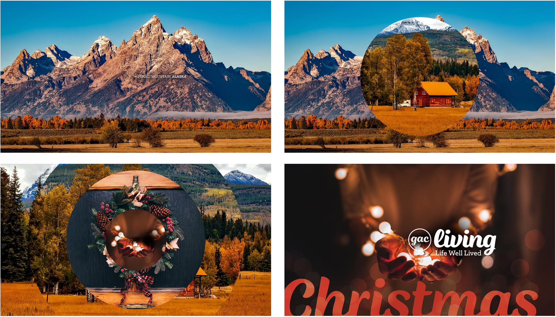 A simple visual sequence travels through America to discover the land, the homes, the people, the customs, and celebrations. The circular logo remains at the center of the screen providing a point of reference for the journey ahead.